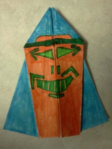 – Tape a skewer or a toothpick to the inside of the middle fold.