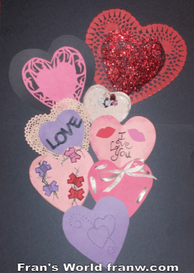Cut out a heart and glue it to the middle of a doily, then decorate the middle of the heart any way you like.