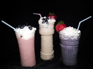 Note:This shake can be made with any kind of fruit and served any time of the year, but for a patriotic feel, use red fruits such as strawberries, raspberries, or pitted cherries, blue fruit such as blueberries or blackberries or a white fruit such as bananas for the shake. Garnish with alternate fruit colors to keep the red, white and blue theme going! Leftovers can be frozen.