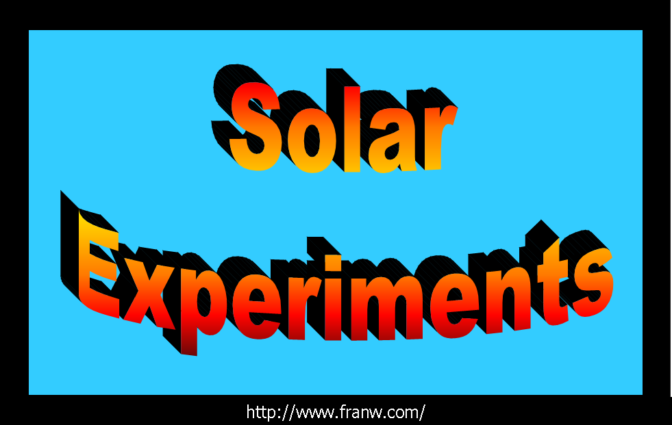 A hot sunny day, dark colored construction paper, various objects that won’t melt: A key, leaf, pencil, scissors, etc., crayons, cookie sheet, potholder, aluminum foil, a glass jar, tea bag, old crayons, inexpensive XX-large garbage bags, rubber bands, scissors, 25+’ string, and a wide open space