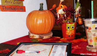 1 – Full page word search with words related to the activity of carving pumpkins. The page has a picture behind the puzzle and can be framed and left out as a decorative item. All the words in this puzzle have been manually placed – this puzzle has not been generated with a puzzle program.