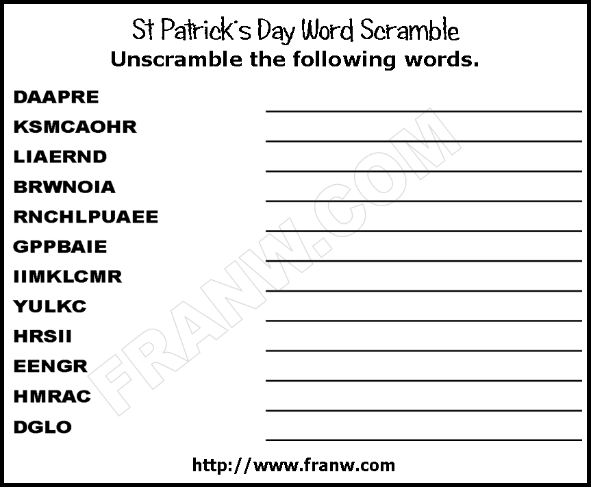 St. Patrick’s Day Activities – Activities that can be found on FranW.com