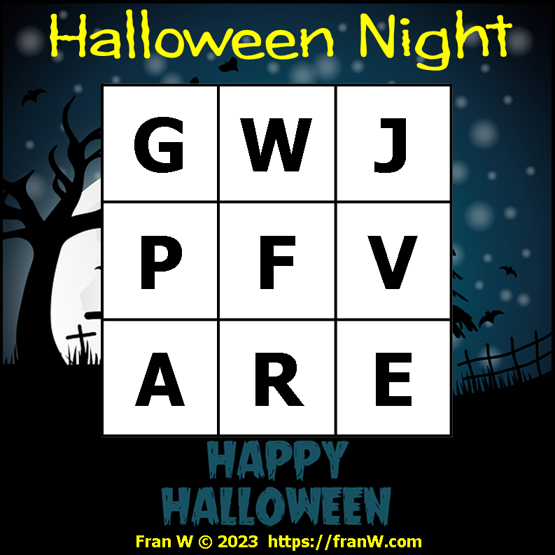 Use the letters below to come up with facts and words directly related to Halloween Night.
