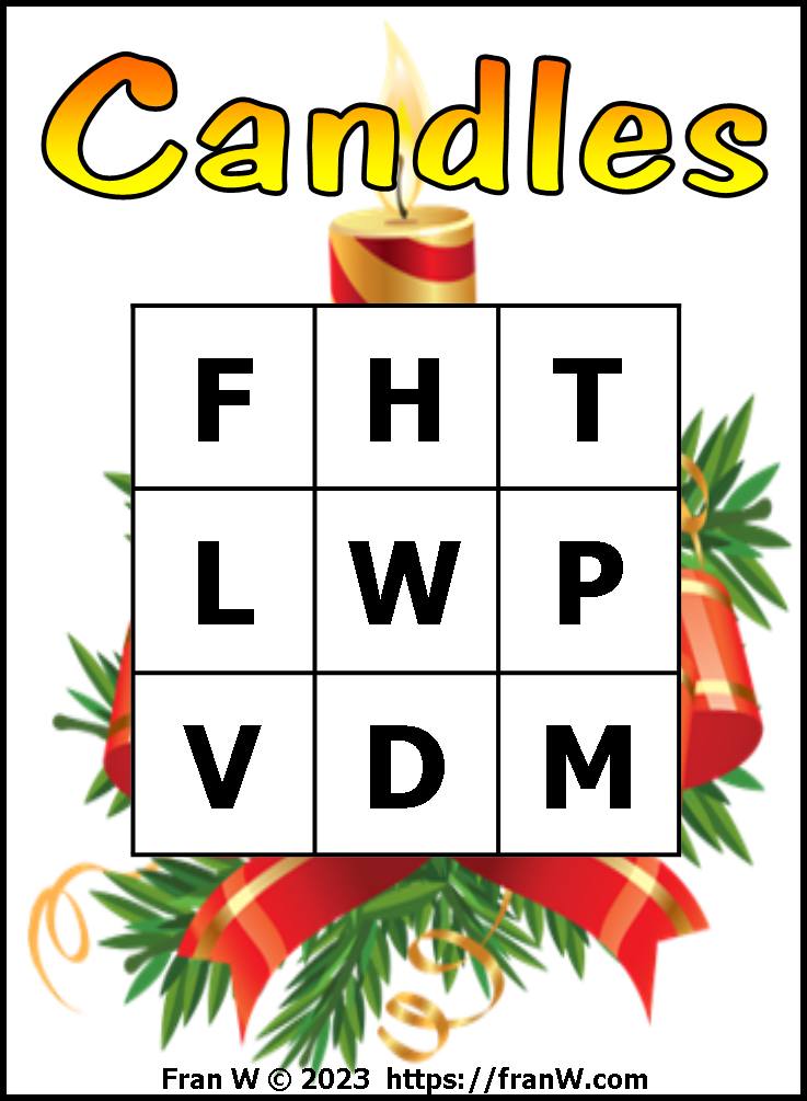 Use the letters below to come up with facts and words directly related to candles.