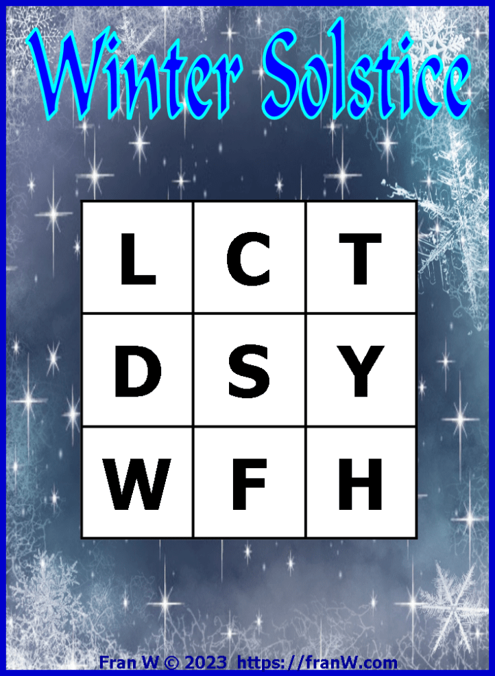 Use the letters below to come up with facts and words directly related to Winter Solstice.