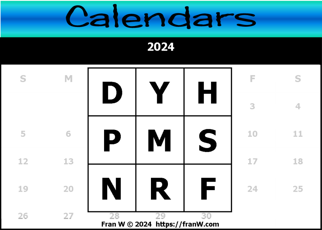 Use the letters below to come up with facts and words directly related to calendars.