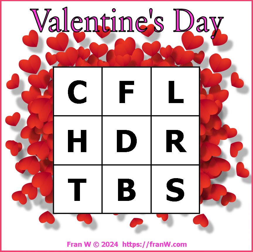 Use the letters below to come up with facts and words directly related to Valentine’s Day.