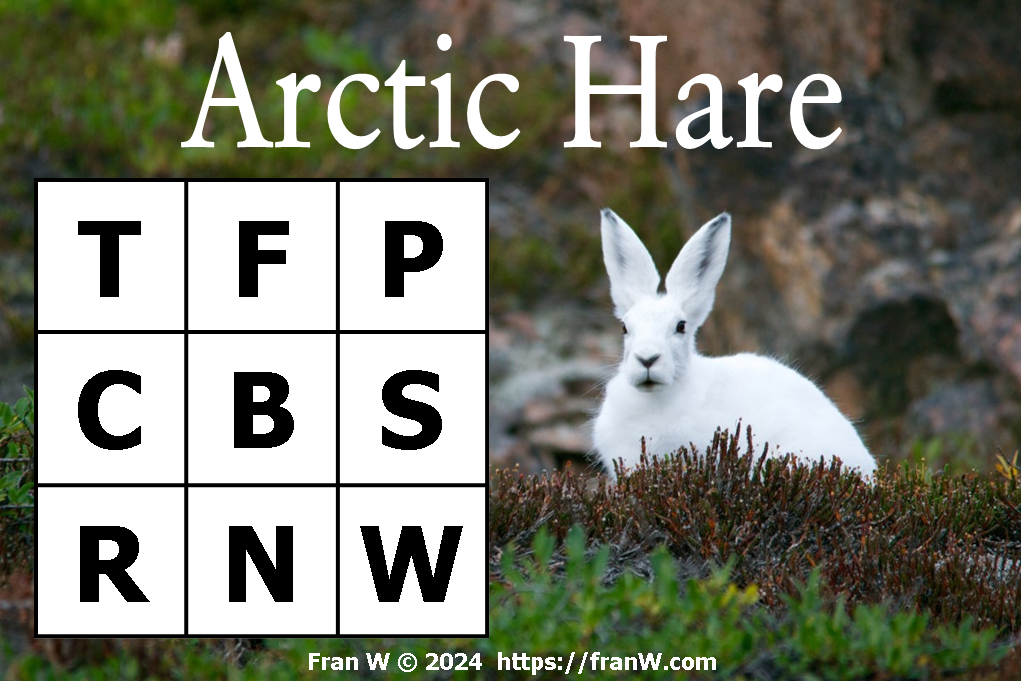 Use the letters below to come up with facts and words directly related to Arctic Hare.