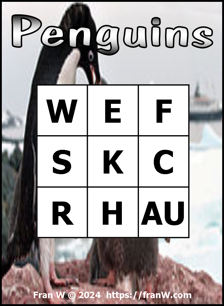 Use the letters below to come up with facts and words directly related to Penguin facts.