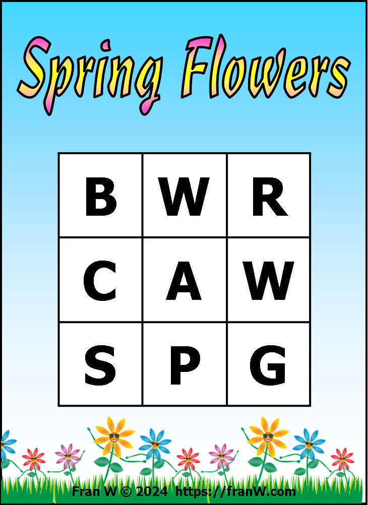 Use the letters below to come up with facts and words directly related to Spring Flowers based on your personal experiences, things you know (facts), observations, and likes.