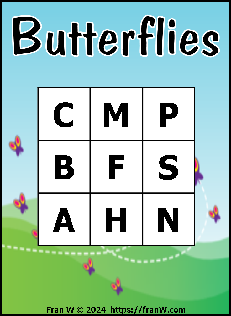Use the letters below to come up with facts and words directly related to Butterflies based on your personal experiences, things you know (facts), observations, and likes.