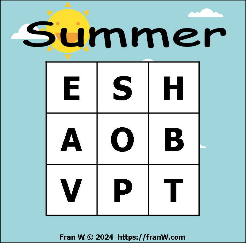 Use the letters below to come up with facts and words directly related to Summer based on your personal experiences, things you know (facts), observations, and likes.