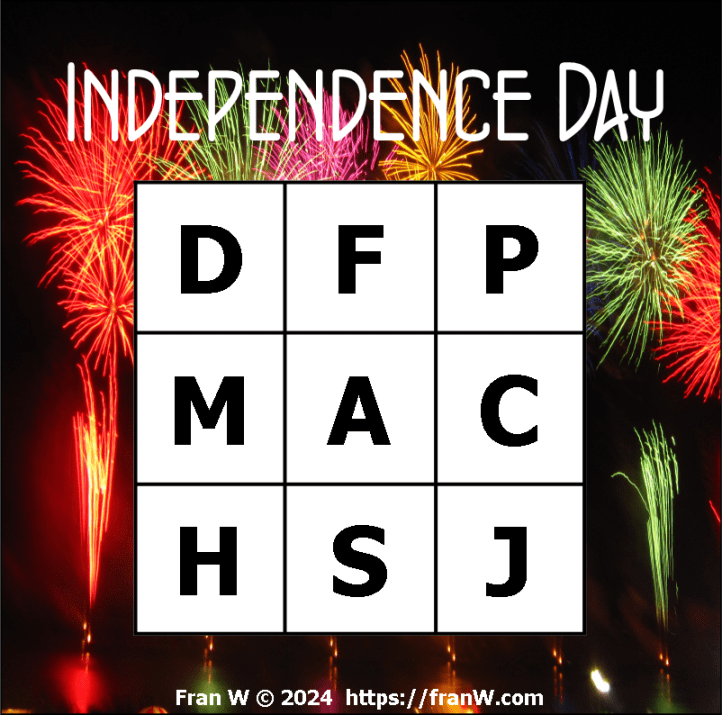 Use the letters below to come up with facts and words directly related to a Independence Day based on your personal experiences, things you know (facts), observations, historical events, and likes.