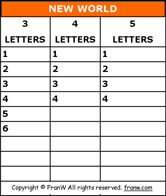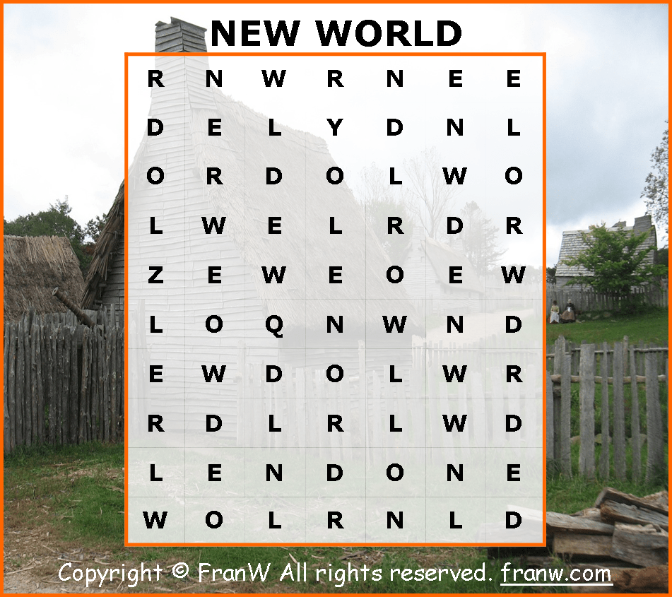 The puzzle below has 12+ words to find using the words: NEW WORLD