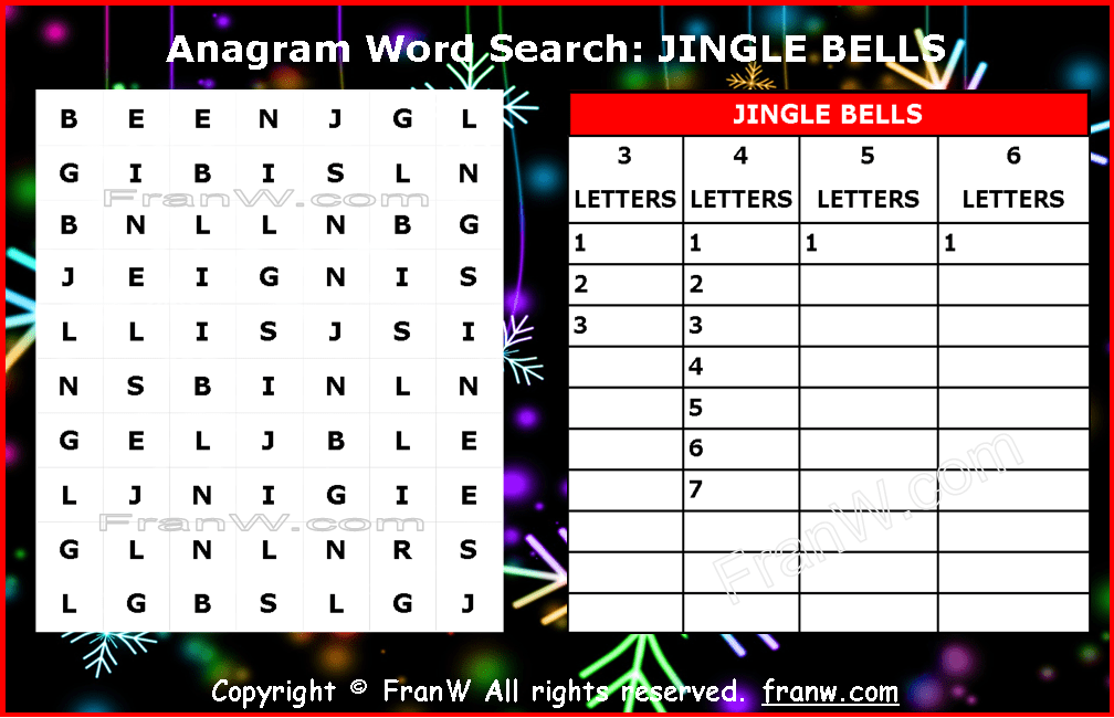 The words: “JINGLE BELLS” can make over 150 words.