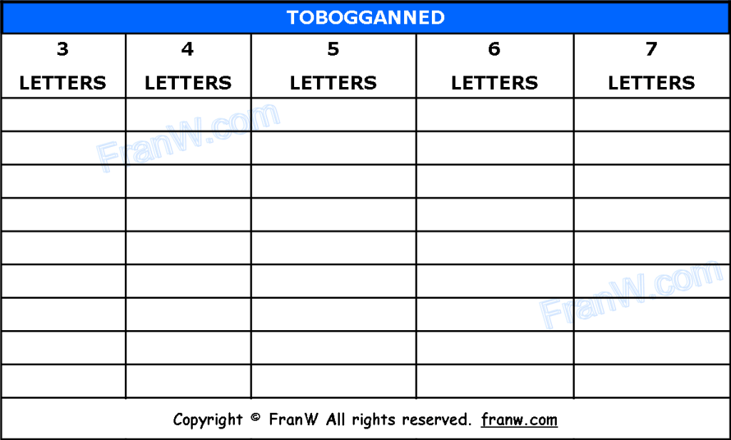 Use the letters of the word TOBOGGANNED to determine the answer to the questions.