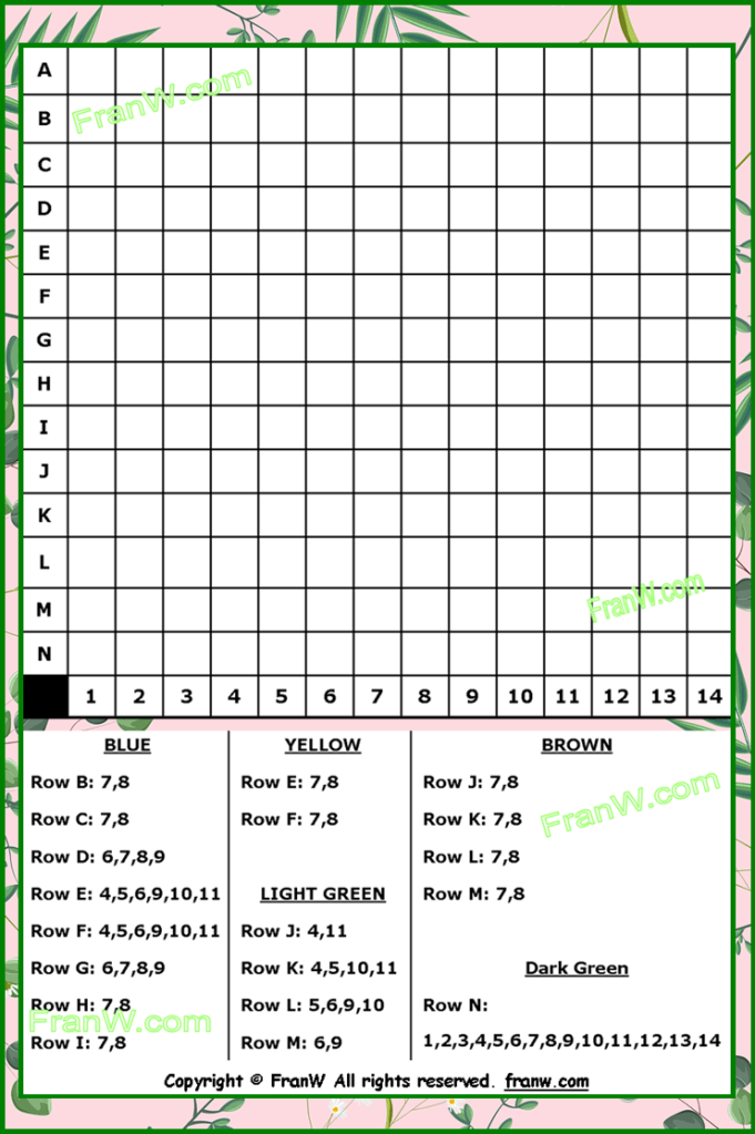 Use the letters and numbers below the grid to plot the spaces (row & number) and color it in the color suggested.