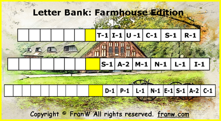 Place the letters in the correct spaces using the letters provided in the letter bank. The colored spaces separate words or end a word.