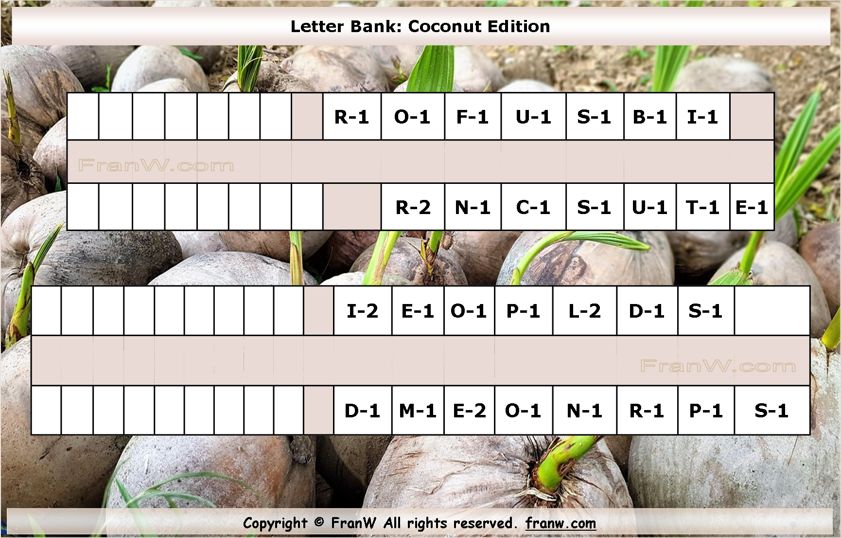 Place the letters in the correct spaces using the letters provided in the letter bank. The colored spaces separate words or end a word.