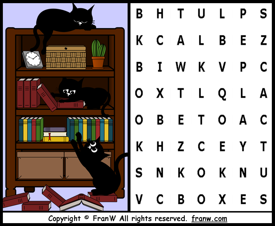 TIP: All the words within the puzzle can be found in the picture with the kittens. Words are related to their actions, items, and physical attributes.