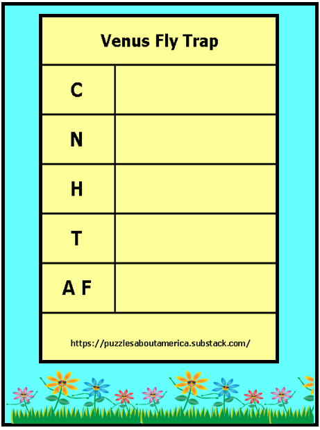 Use the letter hints to figure out some attributes of the Venus Fly Trap.