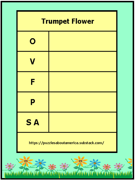 April 16, 2026April 2, 2026 Fran W April Series 2026: Trumpet Flower This month’s puzzles feature: Unusual Plants Use the letter hints to figure out facts about the Trumpet Flower. Connect with FranW.com! Facebook Twitter Pinterest YouTube Channel Share this: Share on X (Opens in new window) X Share on Facebook (Opens in new window) Facebook Email a link to a friend (Opens in new window) Email Share on Pinterest (Opens in new window) Pinterest Share on Telegram (Opens in new window) Telegram Like Loading... Related